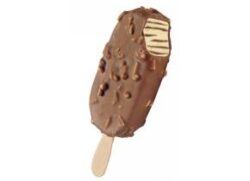 Gelato alla vaniglia ricoperto al cioccolato al latte e pezzetti di mandorle.