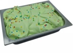 Gelato artigianale di alta qualità con latte e panna freschi al gusto di fior di latte di colore verde e decorato con stelline.