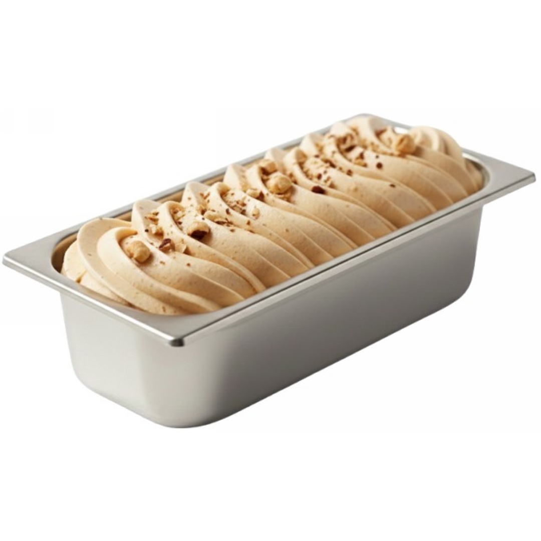 Gelato artigianale di alta qualità con latte e panna fresca al gusto di nocciola.