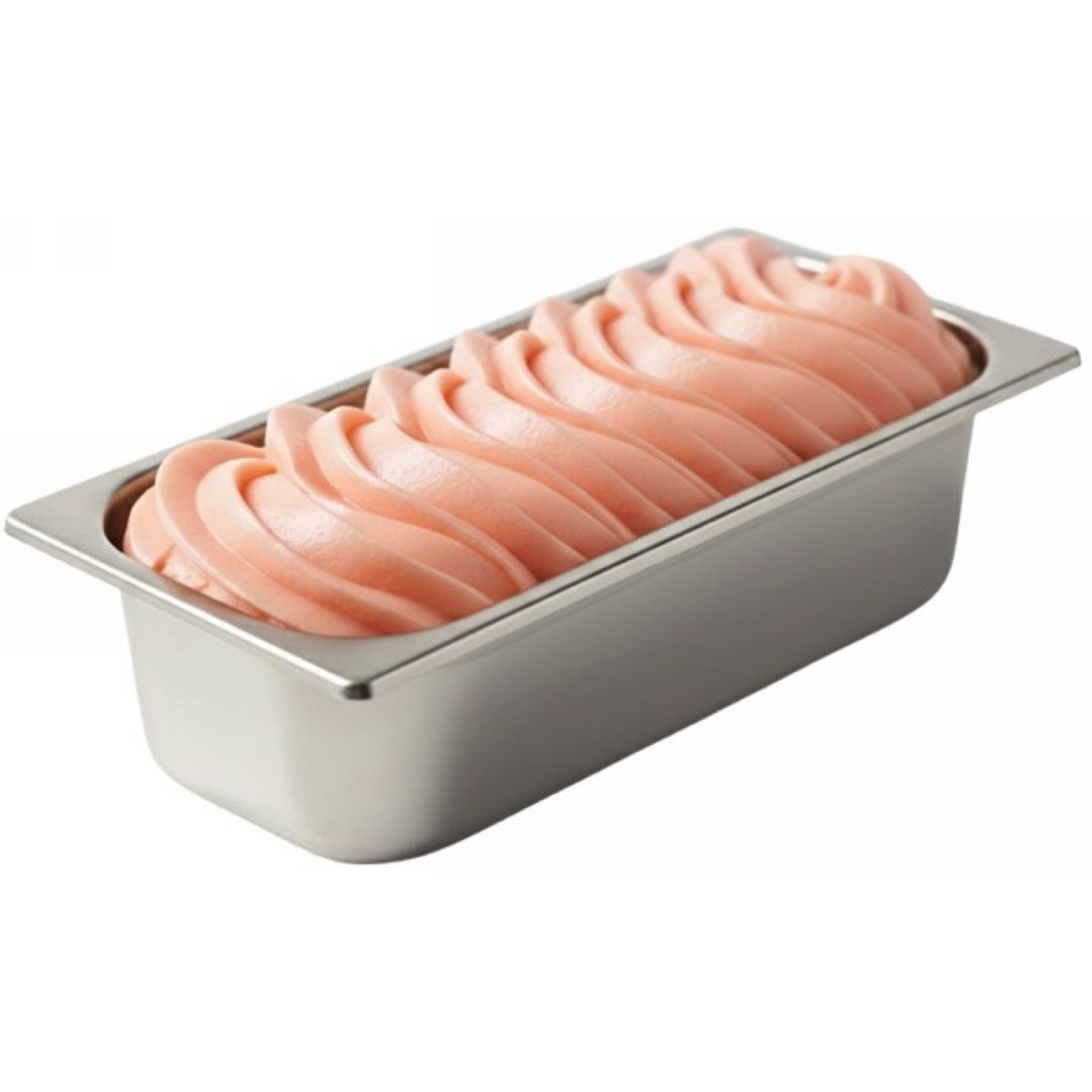 Gelato artigianale di alta qualità al gusto di pompelmo rosa con il 100 % di succo di pompelmo.